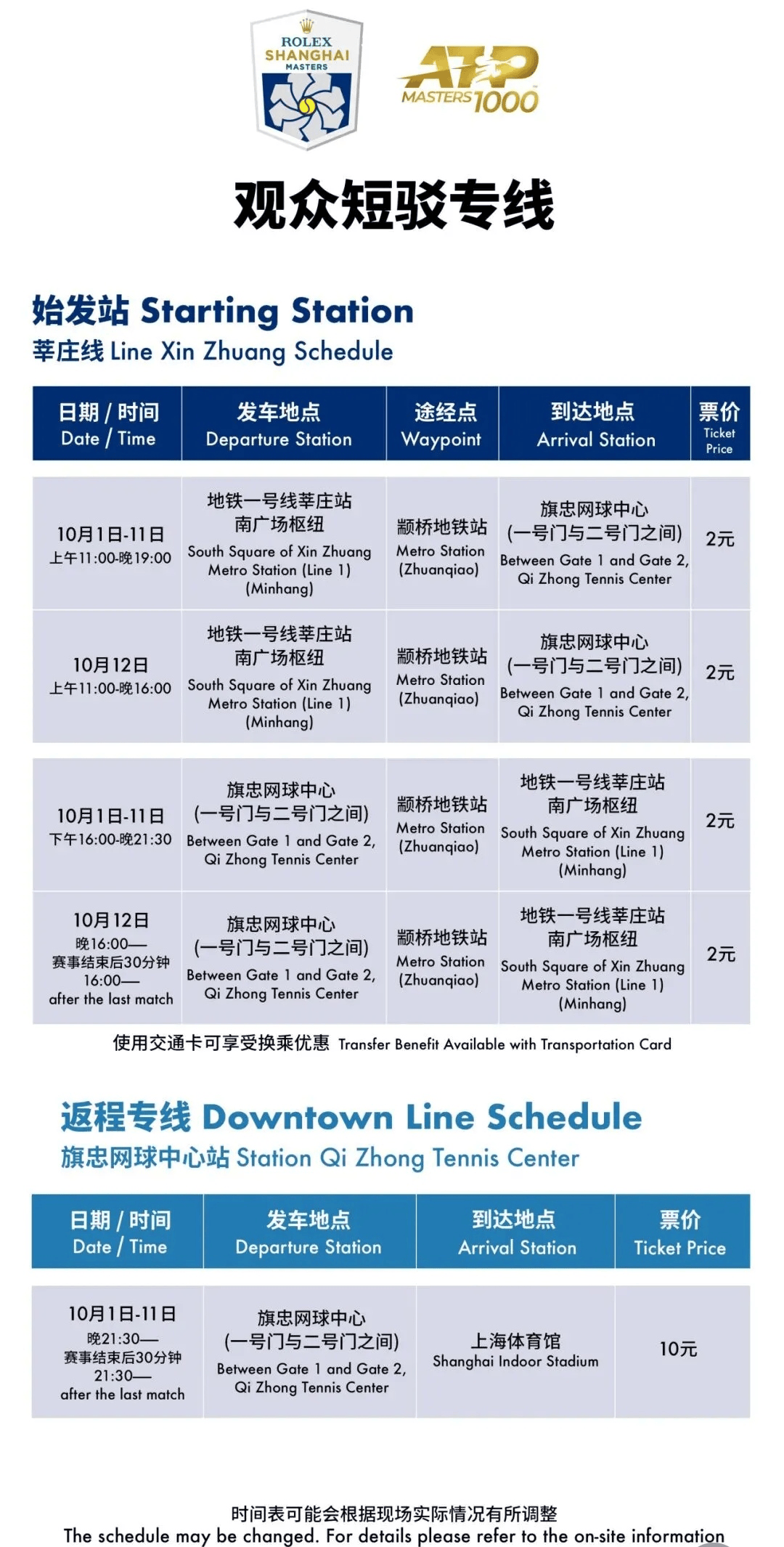 为了方便网球迷们前来观看比赛,此次官方设置了多条直达赛事地点的接驳专线,与地铁站链接,方便大家观看比赛。