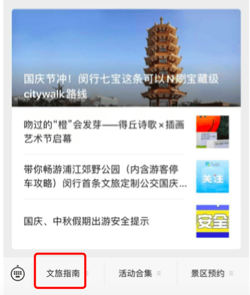 想了解更多闵行特色线路、特色景点、闵行美宿、伴手礼等,可以点击“白相到闵行”微信公众号首页,“文旅指南”进行详细了解。