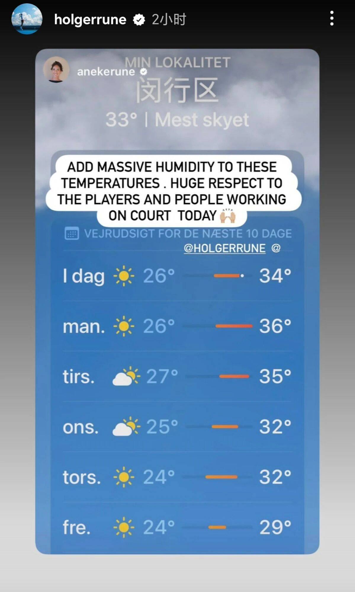 看到鲁内这场比赛赢得非常不容易,很多人都认为赛后他肯定会迅速休息,没想到他的一句话,让上海高温天气再次受到热议的同时,也将ATP推向了舆论风口浪尖。