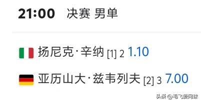 在决赛中,辛纳将与赛会2号种子、德国名将兹维列夫争夺冠军。兹维列夫同样发挥出色,直落两盘,以6比4、7比5击败了赛会4号种子、意大利名将穆塞蒂,结束了对后者的三连败,闯入本赛季第4个巡回赛决赛。这也是兹维列夫职业生涯的第40个巡回赛男单决赛,接下来他将力争赢得个人的第25座巡回赛男单冠军。