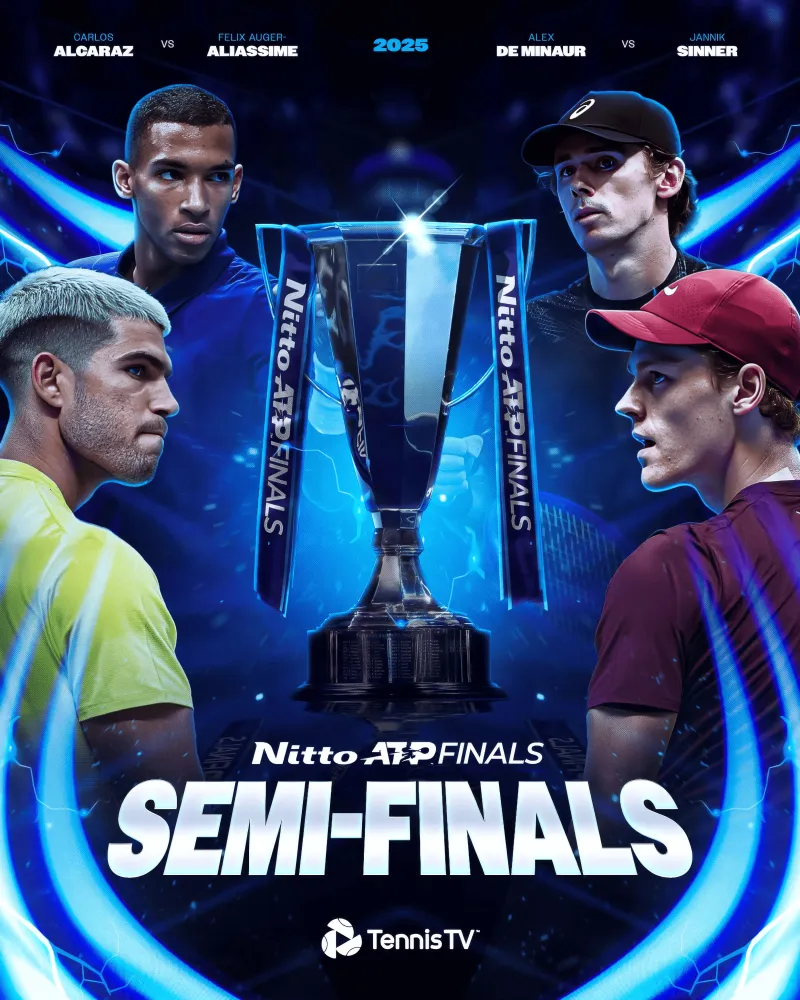 虎扑11月15日讯 ATP年终总决赛结束小组赛争夺,阿尔卡拉斯、辛纳、德米纳尔和阿利亚西姆会师半决赛。