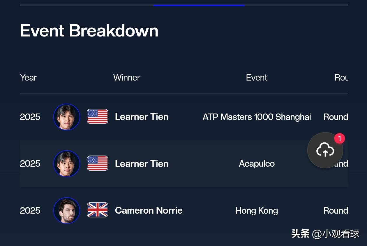 另一场半决赛中,勒纳钱以6-1/6-4击败了乌克兰幸运落败者维塔利·萨克奇,晋级本赛季的第二个巡回赛决赛。19岁的勒纳钱在这场比赛中展现了出色的控制力,以精准的击球和巧妙的线路调动让萨克奇陷入困境。仅用58分钟便轻松拿下比赛,成功晋级决赛。值得一提的是,勒纳钱和若昂·丰塞卡成为2025年第二位闯入多个巡回赛级别决赛的青少年选手。上个月,勒纳钱曾闯入北京站决赛,最终输给了扬尼克·辛纳。现在,他的PIF ATP实时排名已升至第31位,而赛季初他还远在120名开外。