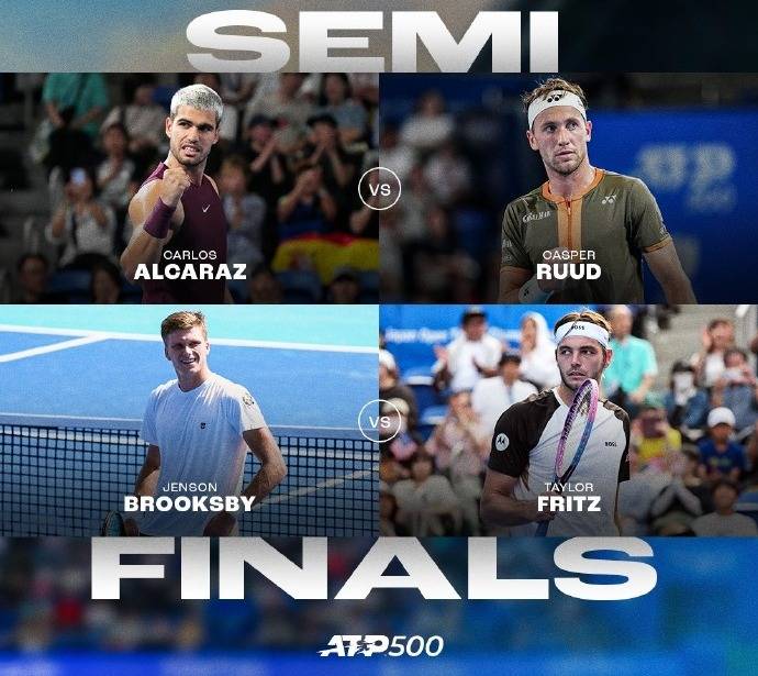 我们再把目光转向日本。北京时间昨晚,ATP500东京站结束了单打八强战,四强全部产生。头号种子、西班牙红星阿尔卡拉斯发挥稳定,以6-2 6-4击败美国人布兰登-中岛,连续9站赛事均至少打进四强。半决赛,他将对阵4号种子、挪威一哥鲁德,后者以6-3 6-2轻取澳洲资格赛球员武基奇。